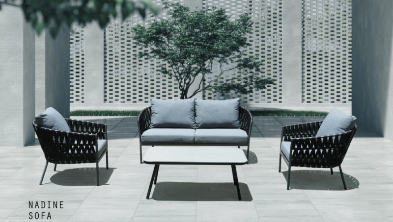 Grey straps weaving outdoor sofa set